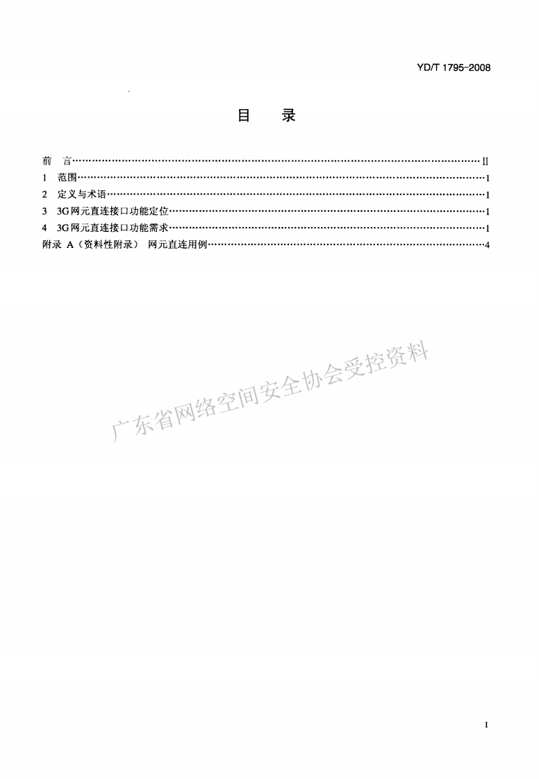 ICS33040M14YD中华人民共和国通信行业标准YD/T1795-20082GHz TD-SCDMA/WCDMA数字蜂窝移动通信网网络管理技术要求网元直连接口功能Network Management Technical Requirements for2GHz TD-SCDMA/WCDMA Digital Cellular MobileCommunications NetworkElement Direct connection Interface Function2008-03-28发布2008-06-01实施中华人民共和国工业和信息化部发布