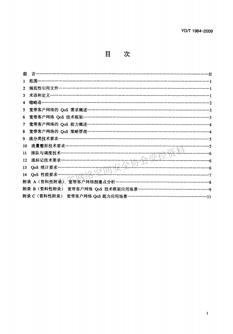 YD-T-1964-2009348072@abc4个月前发布关注私信0.63MB17页038YD-T-1964-2009此内容为付费资源,请付费后查看¥17¥23黄金会员免费钻石会员免费立即购买您当前未登录!建议登陆后购买,可保存购买订单付费资源 第1页 / 共17页 第2页 / 共17页 试读已结束,还剩15页,您可下载完整版后进行离线阅读 THE END标准规范 文本预览 1CS33.040.50M19YD中华人民共和国通信行业标准YD/T1964-2009基于公用电信网的宽带客户网络服务质量(QoS)技术要求QoS Technical Requirements for Broadband Customer NetworkBased on Telecommunication Network2009-06-15发布200909-01实施中华人民共和国工业和信息化部发布 查看更多 收起部分 喜欢就支持一下吧收藏