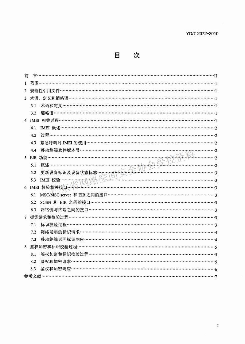 1CS33.040.01M19YD中华人民共和国通信行业标准YD/T2072-20102 GHz TD-SCDMA/WCDMA数字蜂窝移动通信网支持国际移动设备标识(M作)校验的网络设备技术要求2GHz TD-SCDMA/WCDMA digital cellular mobile telecommunicationnetwork-technical requirements for network equipment supportingIMEI checking2010-12-29发布2011-01-01实施中华人民共和国工业和信息化部发布