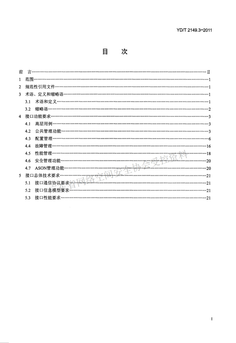 1CS33.040M15YD中华人民共和国通信行业标准YD/T2149.3-2011光传送网(OTN)网络管理技术要求第3部分:EMS-NMS接口功能Technical requirements for optical transport network(OTN)managementpart 3:EMS-NMS interface function2011-06-01发布2011-06-01实施中华人民共和国工业和信息化部发布