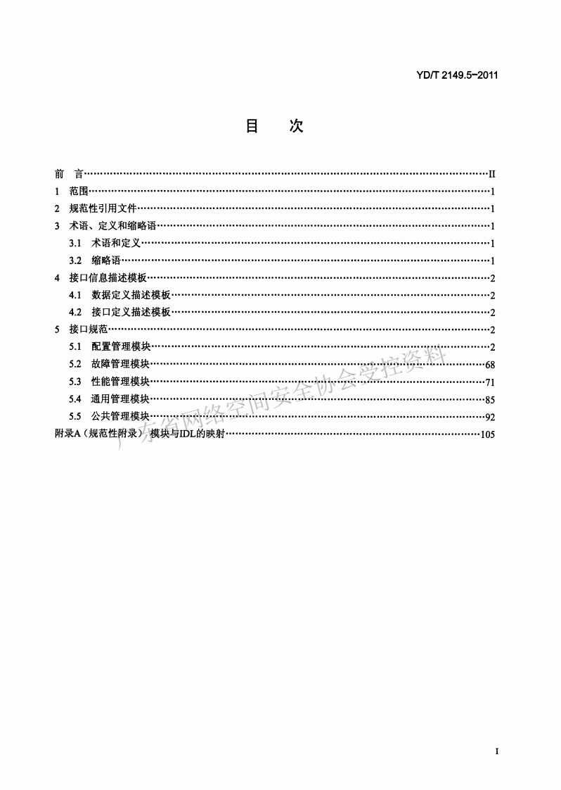 1CS33.040M15YD中华人民共和国通信行业标准YD/T2149.5-2011受控资料光传送网(OTN)网络管理技术要求第5部分:路基于DL/IIOP技术的EMS-NMS接口信息模型Technical requiement for optical transport network management-Part 5:EMS-NMS interface information model based on IDL/IIOP2011-12-20发布201202-01实施中华人民共和国工业和信息化部发布