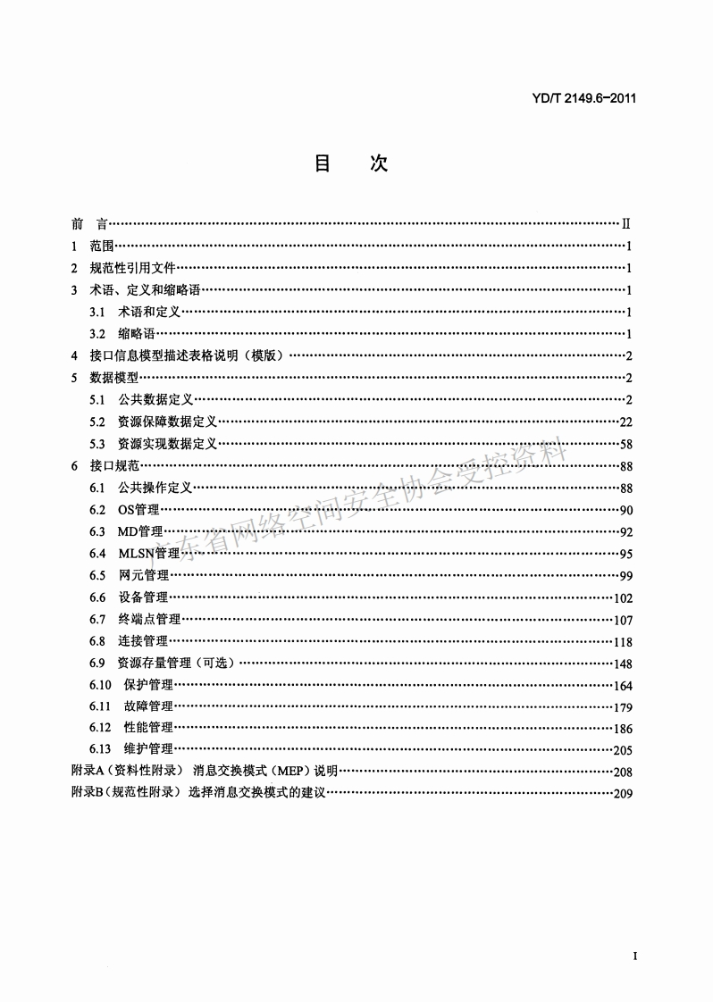 1CS33.040M15YD中华人民共和国通信行业标准YDT2149.6-2011公受控资料光传送网(OTN)网络管理技术要求第6部分:基于XML技术的EMS-NMS接口信息模型Technical requiement for optical transport network management-Part 6:EMS-NMS interface information model based on XML2011-12-20发布2012-02-01实施中华人民共和国工业和信息化部发布