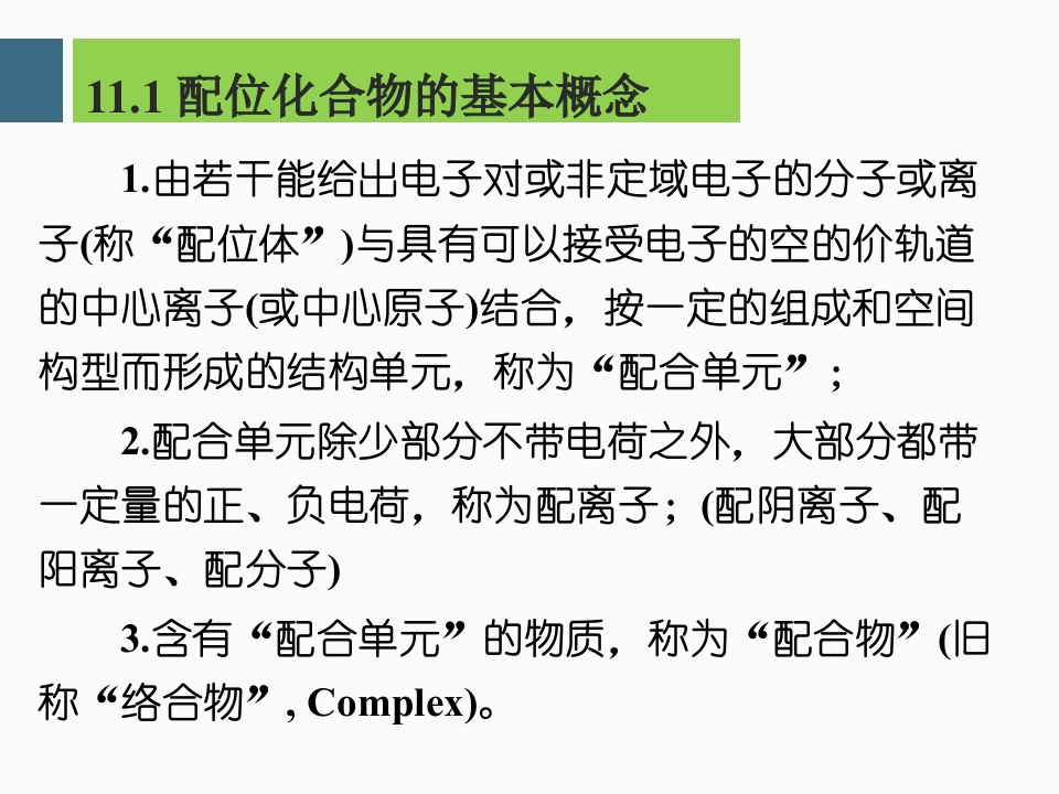 11第十一章配位化学基础吉大348072@abc4天前发布关注私信3.12MB95页04911第十一章配位化学基础吉大此内容为付费资源,请付费后查看¥9¥13黄金会员免费钻石会员免费立即购买您当前未登录!建议登陆后购买,可保存购买订单付费资源 第1页 / 共95页 第2页 / 共95页 第3页 / 共95页 试读已结束,还剩92页,您可下载完整版后进行离线阅读 THE ENDPPT模板实习实践实用范文 文本预览 第11章配位化学基础11.1配位化合物的基本概念11.2配位化合物的价键理论11.3配位化合物的晶体场理论11.4配位化合物的稳定性 查看更多 收起部分 喜欢就支持一下吧收藏
