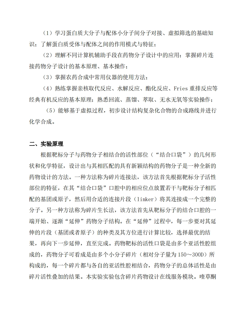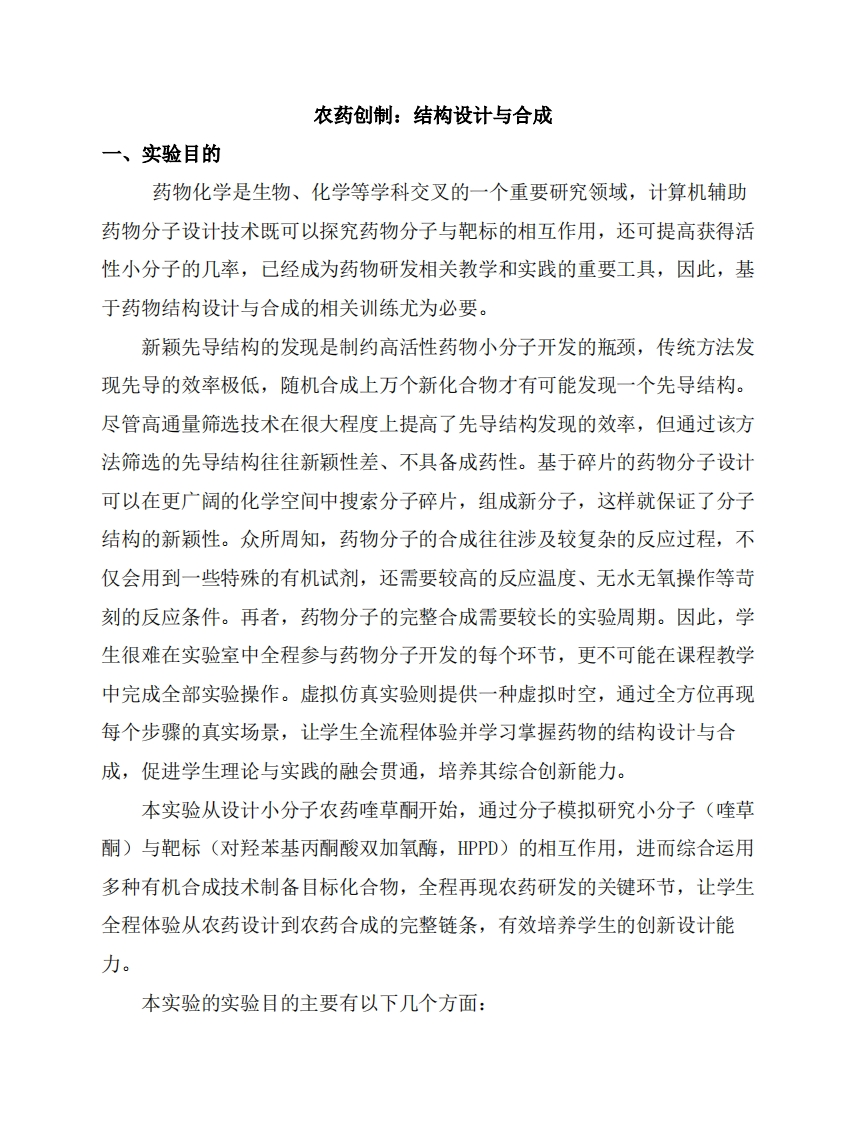 实验九-农药创制-结构设计与合成实验讲义348072@abc4天前发布关注私信1.20MB14页045实验九-农药创制-结构设计与合成实验讲义此内容为付费资源,请付费后查看¥9¥13黄金会员免费钻石会员免费立即购买您当前未登录!建议登陆后购买,可保存购买订单付费资源 第1页 / 共14页 第2页 / 共14页 第3页 / 共14页 试读已结束,还剩11页,您可下载完整版后进行离线阅读 THE ENDPPT模板实习实践实用范文 文本预览 美華中师锐大鉴CENTRAL CHINA NORMAL UNIVERSITY华中师范大学化学学院综合化学实验教学讲义实验九课程名称:农药创制:结构设计与合成 查看更多 收起部分 喜欢就支持一下吧收藏