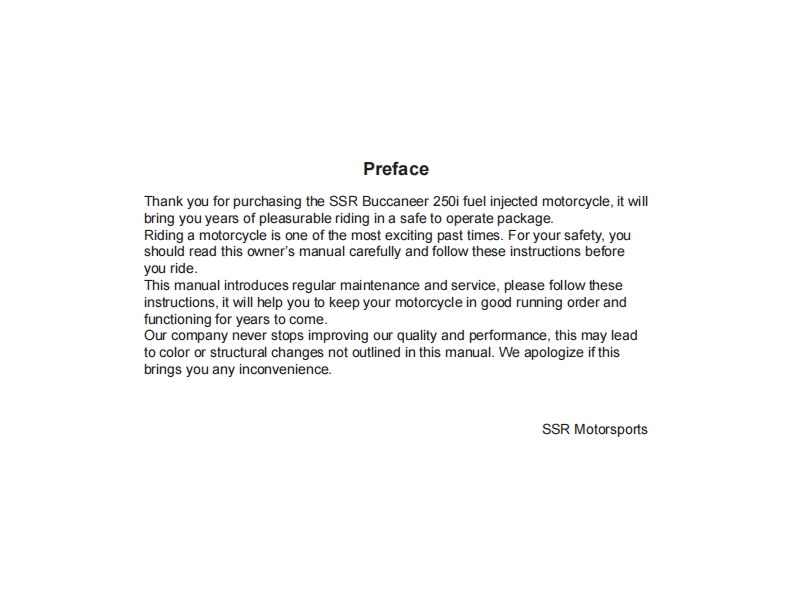 Buccaneer_驾驶与日常保养说明书手册348072@abc4个月前发布关注私信3.82MB35页044Buccaneer_驾驶与日常保养说明书手册此内容为付费资源,请付费后查看¥13¥23黄金会员免费钻石会员免费立即购买您当前未登录!建议登陆后购买,可保存购买订单付费资源 第1页 / 共35页 第2页 / 共35页 试读已结束,还剩33页,您可下载完整版后进行离线阅读 THE END说明书手册 文本预览 Buccaneer 250i Owner's Manual写只MOTORSIPORTS 查看更多 收起部分 喜欢就支持一下吧收藏