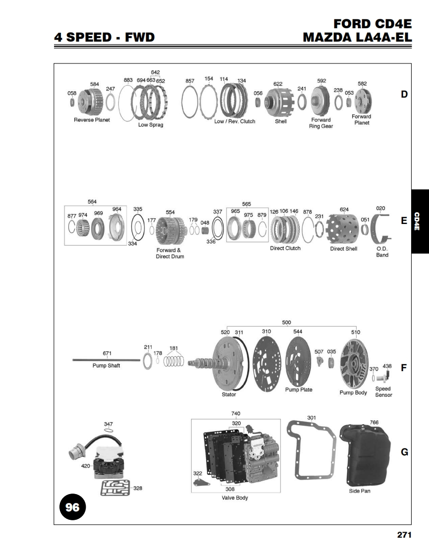 FORD CD4EMAZDA LA4A-EL4 SPEED FWD999-1706031369-292293847715598899063281263262264700000009076050318Differential701Driven Sprocket702705A07052927903225102982988Conv.Reactor750Conv./BellChain CoverDrive SprocketHousing646235052612888982656667579876148128108887152112132B023267304900SunForwardTurbine Shaft●oaslGearSpragClutch HubForward ClutchCoast Clutch991991-41007607276056655696613011567976150892046046893563392118859779670Reverse DrumReverseClutchCaseDeluxe Kit---0089992900Compliance Kit--007Master Kit-006010-901Less Steel Kit--0040-379Overhaul Kit -----=-=-002903Bushing Kit--030379902Washer Kit-200@Bearing Kit ---201904FilterTechnical Manual-400Pump Part----507O.D.ServoValve Body Parts-741Case Parts-----76196270inspired by photog aphs ofginally publshed by Slauson Tansmission Parts and that Slauson is the owner of the copyright in those photographs.This catalbg is the proprietary property of Transtar Industries,Ine.