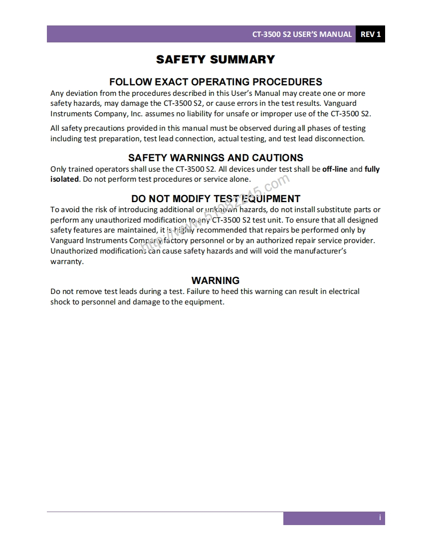 CT-3500S2Digital Circuit Breaker TimerUSER'S MANUALQ82245-C。CT-350n2:002430088BUSYVanguard Instruments Co.,Inc.WWW.VANGUARD-INSTRUMENTS.COMSERIAL材ADE IN U5AVanguard Instruments Company,Inc.1520 S.Hellman Ave.Ontario,California 91761,USATEL:(909)923-9390July 2012FAX:(909)923-9391Revision 1