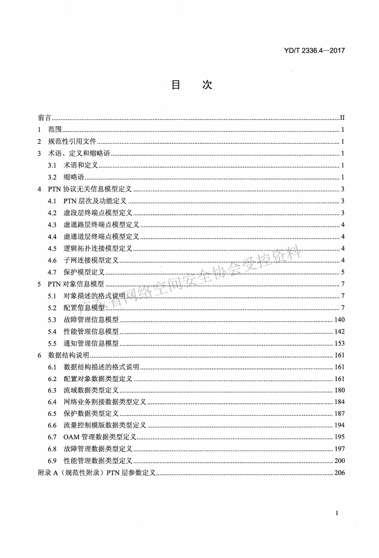 1CS33.040M14YD中华人民共和国通信行业标准YD/T2336.4-2017分组传送网(PTN)网络管理技术要求第4部分:EMS-NMS接口通用信息模型人受控资榨Technical requirement for packet transport network managementPart 4:EMS-NMS interface common information model广东省网名2017-11-07发布201801-01实施中华人民共和国工业和信息化部发布