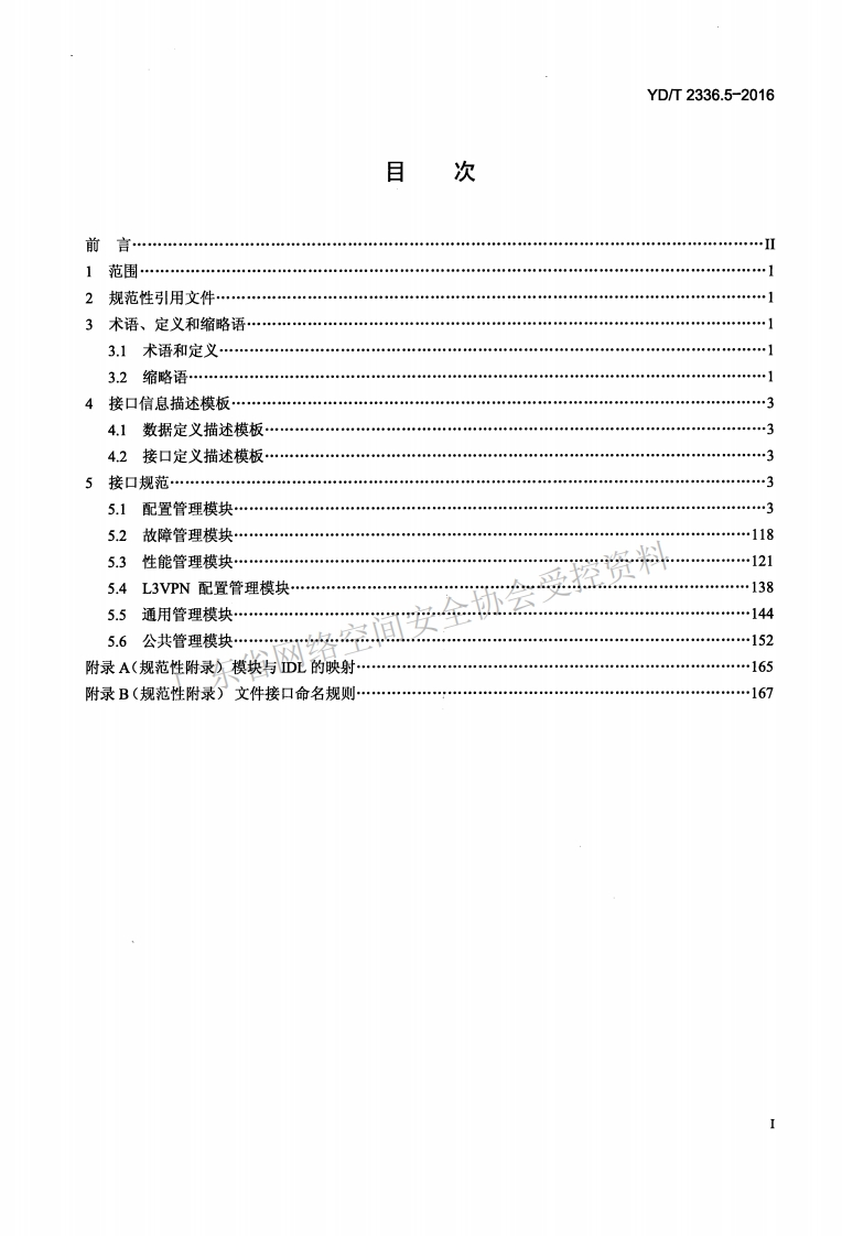 1CS33.040M11YD中华人民共和国通信行业标准YD/T2336.5-2016分组传送网(PTN)网络管理技术要求第5部分:基于IDL/IIOP技术的EMS-NMS接口信息模型广Technical requiement for packettransport network(PTN)managementPart 5:EMS-NMS interface information modelbased on IDL/IIOP2016-04-05发布2016-07-01实施中华人民共和国工业和信息化部发布