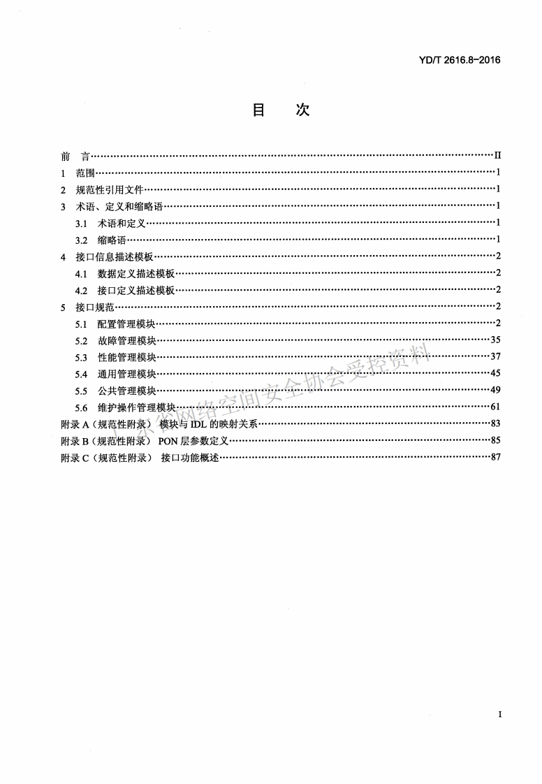 1CS33.180.01M11YD中华人民共和国通信行业标准YD/T2616.8-2016无源光网络(PON)网络管理技术要求第8部分:基于DL川OP技术的EMS-NMS接口信息模型Technical requirements for passive optical network (PON)managementPart 8:EMS-NMS interface information model based on IDL/IIOP2016-04-05发布2016-07-01实施中华人民共和国工业和信息化部发布