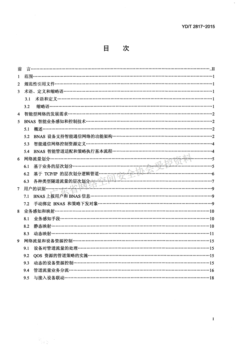 1CS33.040M32YD中华人民共和国通信行业标准YD/T2817-2015宽带网络接入服务器(BNAS)设备流量分析控制技术要求Technical specification for flow awareness and service controllingof broadband network access server (BNAS)2015-04-30发布2015-07-01实施中华人民共和国工业和信息化部发布
