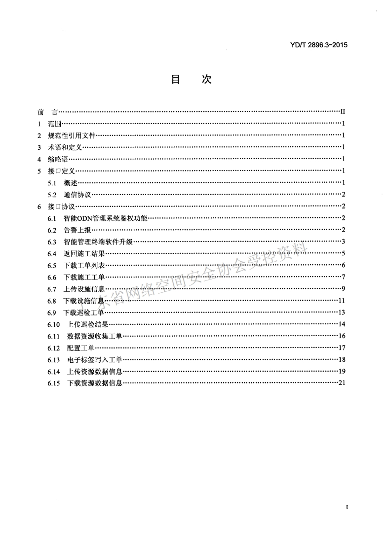 1CS33.180.01M33YD中华人民共和国通信行业标准YD/T2896.3-2015智能光分配网络接口技术要求第3部分:智能管理终端与智能光分配网络管理系统的接口Intelligent optical distribution network interfacetechnical requirementsPart 3:interface between intelligent terminaland intelligent management2015-07-14发布2015-10一01实施中华人民共和国工业和信息化部发布