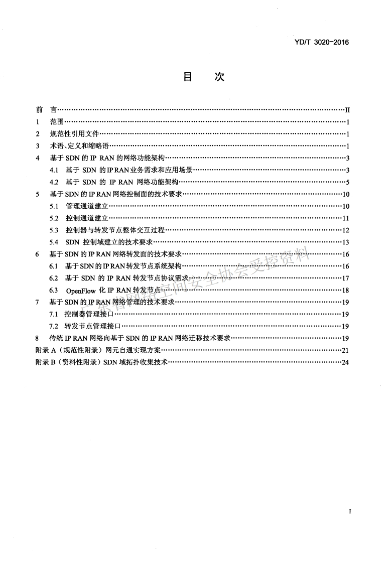 YD-T-3020-2016348072@abc4个月前发布关注私信6.94MB30页027YD-T-3020-2016此内容为付费资源,请付费后查看¥17¥23黄金会员免费钻石会员免费立即购买您当前未登录!建议登陆后购买,可保存购买订单付费资源 第1页 / 共30页 第2页 / 共30页 试读已结束,还剩28页,您可下载完整版后进行离线阅读 THE END标准规范 文本预览 1CS33.040.40M32YD中华人民共和国通信行业标准YD/T3020-2016基于SDN的IP RAN网络技术要求Technical requirement for SDN based IPRAN network广东省网络空2016-01-15发布2016-04-01实施中华人民共和国工业和信息化部发布 查看更多 收起部分 喜欢就支持一下吧收藏