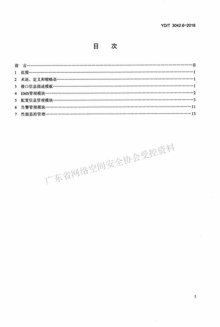 1CS33.040M11YO中华人民共和国通信行业标准YD/T3042.6-2016高精度同步网网络管理技术要求第6部分:基于IDL/IIOP技术的EMS-NMS接回信息模型Technical requirements for high-precisionsynchronized network managementPart 6:EMS-NMS interface information model based on IDL/IIOP2016-04-05发布2016-07-01实施中华人民共和国工业和信息化部发布