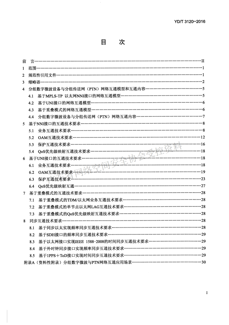 1CS33.040.20M33YD中华人民共和国通信行业标准YDT3120-2016分组数字微波设备与分组传送网(PTN)网络互通技术要求控资Interworking technical requirements between packet digital microwaveequipment and Packet Transport Network(PIN)2016-07-11发布2016-10-01实施中华人民共和国工业和信息化部发布
