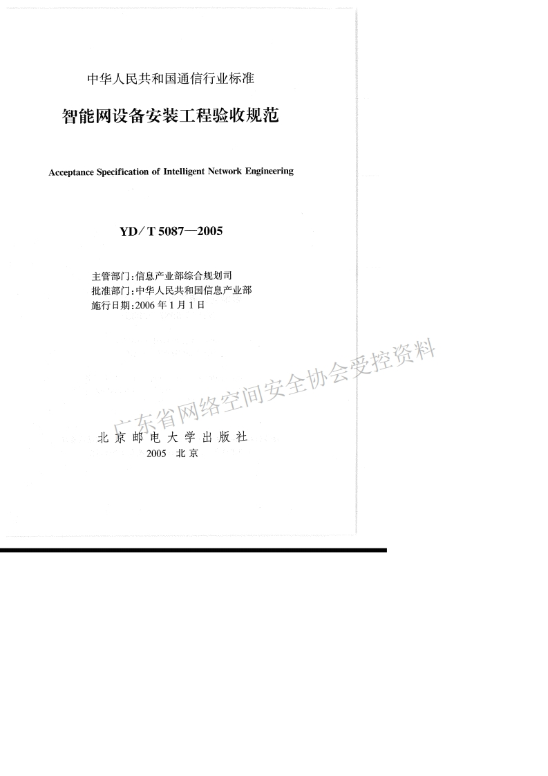 YD-T-5087-2005348072@abc6个月前发布关注私信3.90MB65页038YD-T-5087-2005此内容为付费资源,请付费后查看¥13¥23黄金会员免费钻石会员免费立即购买您当前未登录!建议登陆后购买,可保存购买订单付费资源 第1页 / 共65页 第2页 / 共65页 试读已结束,还剩63页,您可下载完整版后进行离线阅读 THE END标准规范 文本预览 YD中华人民共和国通信行业标准YD/T5087-2005智能网设备安装工程验收规范Acceptance Specification of Intelligent Network Engineering20051008发布东省网络空间安全协会受控资料2006-01-01实施中华人民共和国信息产业部发布 查看更多 收起部分 喜欢就支持一下吧收藏