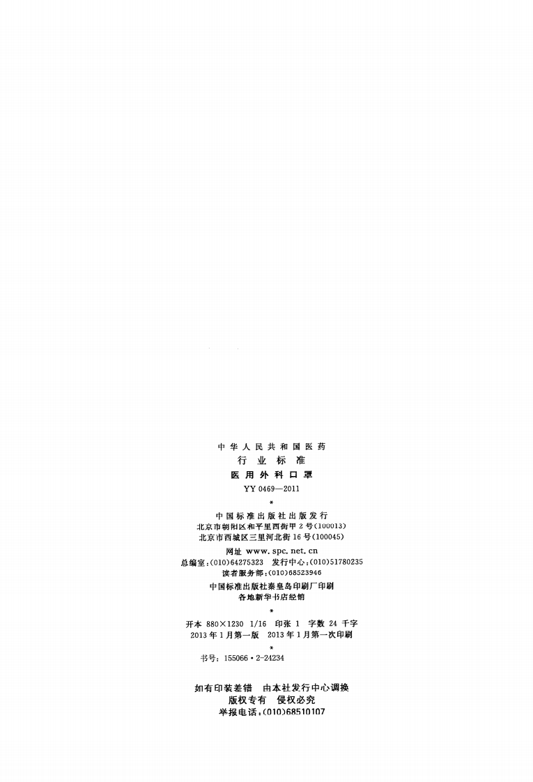 YY0469-2011348072@abc4个月前发布关注私信0.61MB15页030YY0469-2011此内容为付费资源,请付费后查看¥13¥23黄金会员免费钻石会员免费立即购买您当前未登录!建议登陆后购买,可保存购买订单付费资源 第1页 / 共15页 第2页 / 共15页 试读已结束,还剩13页,您可下载完整版后进行离线阅读 THE END标准规范 文本预览 Cs11.140C48YY中华人民共和国医药行业标准YY0469-2011代替YY0469一2004医用外科口罩Surgical mask2011-12-31发布2013-06-01实施国家食品药品监督管理局发布 查看更多 收起部分 喜欢就支持一下吧收藏