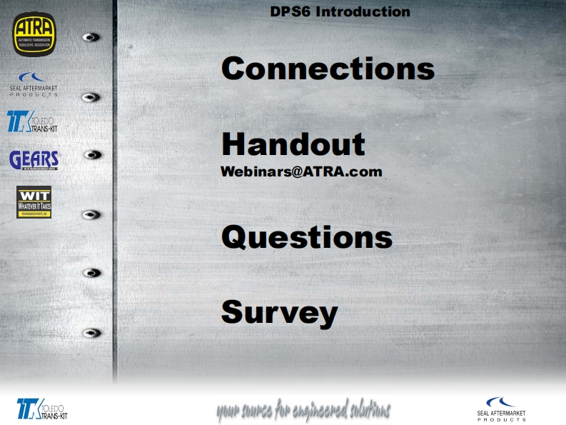 powershift_dct250_dps6_变速箱维修手册(1)348072@abc4个月前发布关注私信4.67MB35页036powershift_dct250_dps6_变速箱维修手册(1)此内容为付费资源,请付费后查看¥13¥23黄金会员免费钻石会员免费立即购买您当前未登录!建议登陆后购买,可保存购买订单付费资源 第1页 / 共35页 第2页 / 共35页 试读已结束,还剩33页,您可下载完整版后进行离线阅读 THE END说明书手册 文本预览 DPS6 IntroductionATRADPS6 IntroductionSEAL AFTERVARKETP R OO U C T SPresented by:TSiscaBill BraytonATRA Senior ResearchTechnicianGEARSWITWHATEVERTAK悠1221兀TOEDOo opohihepedoroSEAL AFTERMARKETP R O D U C T S 查看更多 收起部分 喜欢就支持一下吧收藏