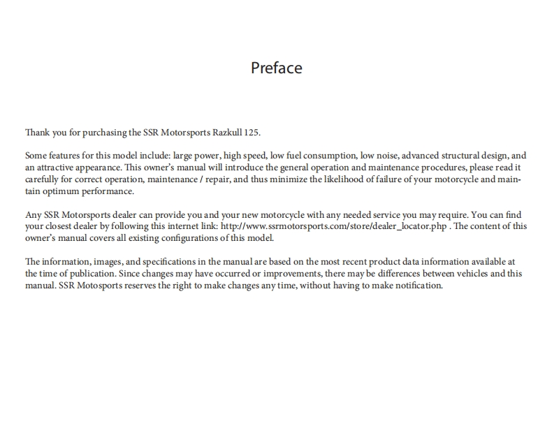 Razkull_驾驶与日常保养说明书手册348072@abc4个月前发布关注私信1.89MB41页044Razkull_驾驶与日常保养说明书手册此内容为付费资源,请付费后查看¥13¥23黄金会员免费钻石会员免费立即购买您当前未登录!建议登陆后购买,可保存购买订单付费资源 第1页 / 共41页 第2页 / 共41页 试读已结束,还剩39页,您可下载完整版后进行离线阅读 THE END说明书手册 文本预览 RAZKULL 125OWNER'S MANUAL 查看更多 收起部分 喜欢就支持一下吧收藏