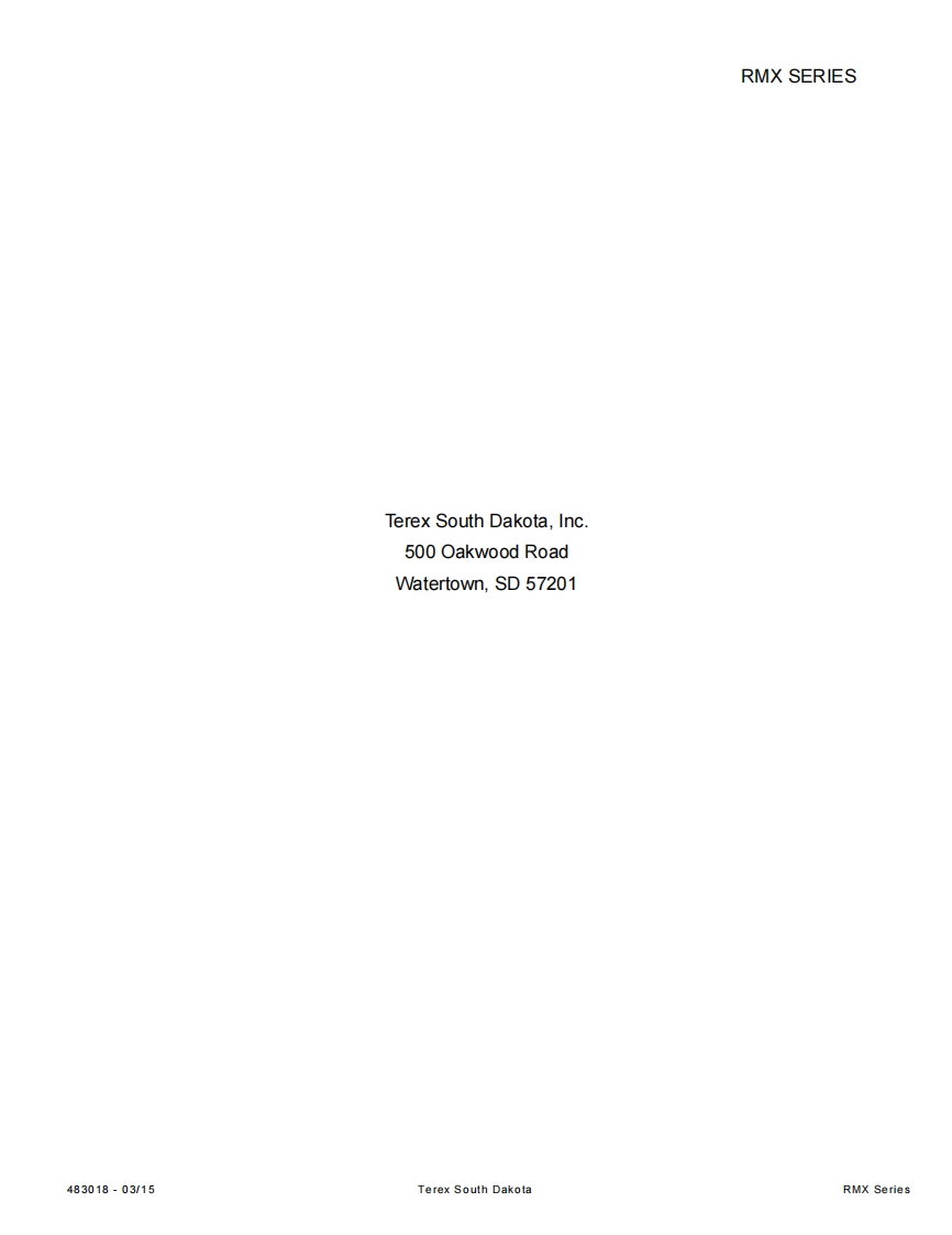 ☒TEREXHI-RANGERRMX SERIESOPERATOR'S MANUALThis Operator's Manual MUST BE READ prior to operating yourRMX SERIES Non-Overcenter Material Handling Articulating Aerial Device.PRINTED IN THE USAOriginal Instructions in English48301803/2015