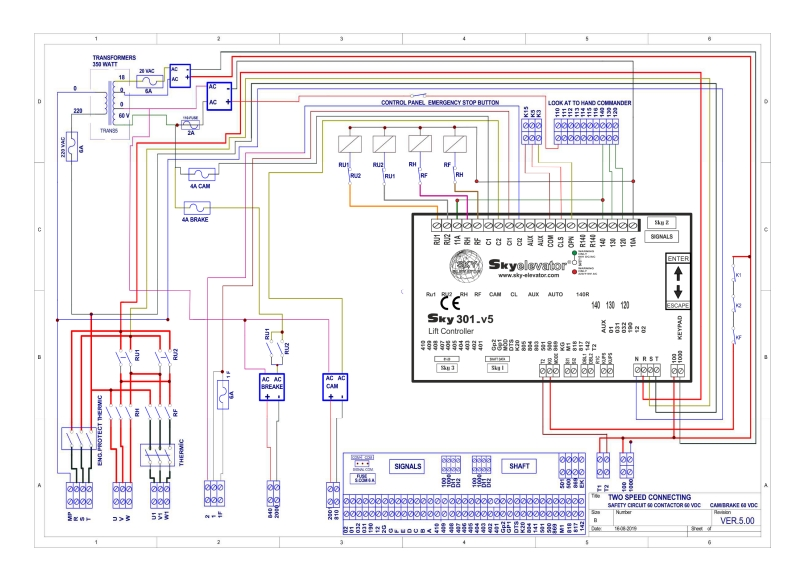 SKYELEVATORSkyElevatorwww.sky-elevator.com图也δ88888用图百5y2SIGNALSKyelevatorwww.sky-elevator.comRU1 RRU2 RHRF CAMCE AUX AUTO 14ORNTE不7厚7话r786黑714013070MANUAL CALLT长CALL NUMBER 000ESCAPE37301V6Lift Controller53里司91f9的百8餐9黄多多9居叁geNPUTRA旧EdVOLTAGEaecSky 30-V6MAIN CONTROL BOARDTECHNICAL DRAWINGV-6.0