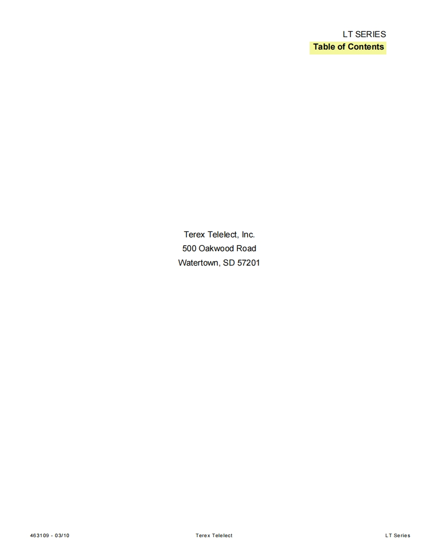 Terex-LT-Series-驾驶操作与日常维修保养说明书手册348072@abc4个月前发布关注私信3MB88页046Terex-LT-Series-驾驶操作与日常维修保养说明书手册此内容为付费资源,请付费后查看¥13¥23黄金会员免费钻石会员免费立即购买您当前未登录!建议登陆后购买,可保存购买订单付费资源 第1页 / 共88页 第2页 / 共88页 试读已结束,还剩86页,您可下载完整版后进行离线阅读 THE END说明书手册 文本预览 ☒TEREXHI-RANGERLT SERIESOPERATOR'S MANUALThis Operator's Manual MUST BE READ prior to operating yourLT SERIES Telescoping Articulating Aerial Device.PRINTED IN THE USA46310903/2010 查看更多 收起部分 喜欢就支持一下吧收藏