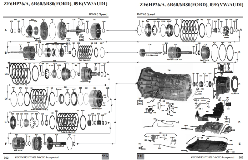 ZF6HP26/A,6R60/6R80(FORD),09E(VW/AUDI)ZF6HP26/A,6R60/6R80(FORD),09E(VW/AUDI)RWD 6 SpeedRWD 6 Speed600000O.De ClachHbaCe(E)0w650是6b040000D1-3362CCOPYRIGHT2009 DACCO Incopomted116116CCOPYR GHT 2009 DACCO Incorpoeted363