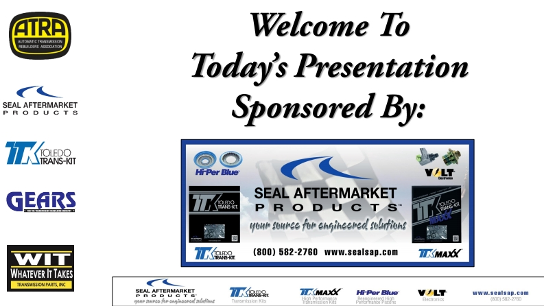 ATRAWelcome ToAUTORAATIC TRANSMESSONToday's PresentationSEAL AFTERMARKETPRO D UC T SSponsored By:TOLEDOHiPer BlueV/LTGEARSSEAL AFTERMARKETP RO D UC T Syout source foh chgiheered solufiuns(800)582-2760www.sealsap.comMAXWHATEVER IT TAKESTRANSMESSICN PARTS INCSEAL AFTERMARKETP RO D U O T 57TKMAXHi-Per BlueVALTWWW.8ea8ap.C0□纳upMd6Ap4h666dn6nansmsoonk2Electronics0582-270