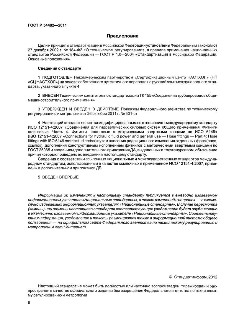 EEPAbHOE ArEHTCTBOnO TEXHNYECKOMy PErYNPOBAHNIO N METPONONNNHAUMOHANbHbIN「OCTPCTAHAAPT54482-POCCNNCKONΦEDEPA4MM2011(MC012151-4:2007)CoennHeHna aA rnapaBnnyecknxcnnoBbIX CNCTeM o6wero npnMeHeHnAΦNTNHrM WJAHrOBbIECMETPNYECKNMN BBEPTHbIMN KOHLAMNN O-O5PA3HbIM ynnOTHNTENbHbIMKOΠb4OMTexHnyeckne Tpe6oBaHnA1S012151-4:2007Connections for hydraulic fluid power and general use-Hose fittings-Part 4:Hose fittings with ISO 6149 metric stud ends(MOD)M3 QaHne o中nunanbHoeMockBaCTaHgapTMH中opM2012