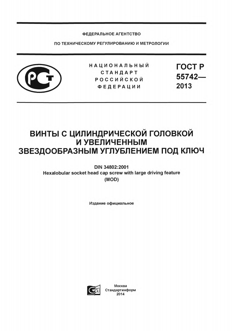 中EEPANbHOE A「EHTCTBOnO TEXHNYECKOMy PErYNPOBAHNIO W METPOnOrNNHAUMOHANbHbINTOCT PCTAHAAPTPOcCNNCKON55742ΦEDEPA4MM2013BNHTbI C UNNNHAPNYECKON rONOBKONN yBENNYEHHbIM3BE3005PA3HbIM yrny6nEHNEM nO KnO4DIN34802:2001Hexalobular socket head cap screw with large driving feature(MOD)M3 QaHne o中unanbHoeMockBaCTaHAapTMHO中opM2014