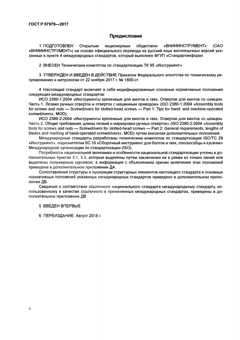 EAEPANbHOE ArEHTCTBOno TEXHNYECKOMy PErynNPOBAHNIO W METPONOrNNHAUMOHAnbHbINTOCT PCTAHAAPT57979POCCNNC KONΦEAEPA4MM2017OTBEPTKN CJECAPHO-MOHTAXKHbIE.PABOYAA 4ACTb OTBEPTOKna BNHTOB N山yPynOBC nPAMbIM山nM4EMPa3Mepbl(1S02380-1:2004,Assembly tools for screws and nuts-Screwdrivers for slotted-head screws-Part 1:Tips for hand-and machine-operated screwdrivers,MOD)(1S02380-2:2004,Assembly tools for screws and nuts-Screwdrivers for slotted-head screws-Part 2:General requirements,lengths of blades and marking of hand-operatedscrewdrivers,MOD)M3 QaHne oφMuNanbHoeMockBaCTaHaapTHHφopM2018