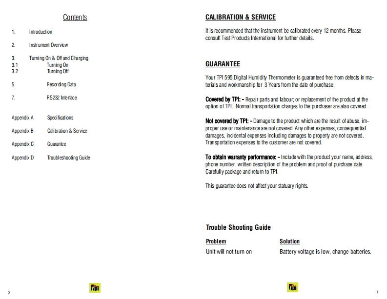 而The Value Leader'mwww.hoi-thevalueleader.comTPI 595Visit TPl,The Value Leader at:www.tpi-thevalueleader.comm595Test Products Intemational,Inc.Headquartes:9615 SW Allen Blvd.Beaverton,OR 97005USA503-520-9197·F2C503-520-1225e-mail:intotpi-thevalueleader.comTest Products Intemational,Ltd.342 Brone St.South Unit#9Miton,Ontario L9T5B7C2n2边905-693-8558·F2C905-693-0989e-mail:ino@p2e边.comDigitalHygro-ThermometerTest Products Intemnational UK Ld.Longley House,East ParkCrawley.West Sussex RH106APEnglandTet+4(0128561212「2C+44(01293813465e-mail:inio@pi-uk.comDigital Humidity Thermometer53M。2048