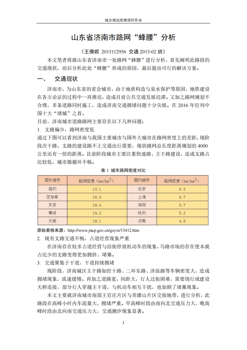 《城市规划原理》-蜂腰348072@abc3个月前发布关注私信1.20MB7页031《城市规划原理》-蜂腰此内容为付费资源,请付费后查看¥19¥23黄金会员免费钻石会员免费立即购买您当前未登录!建议登陆后购买,可保存购买订单付费资源 第1页 / 共7页 第2页 / 共7页 试读已结束,还剩5页,您可下载完整版后进行离线阅读 THE END工学类 文本预览 山唐1896历有文通大¥题目:山东省济南市路网“蜂腰”分析作者:王倩妮学号:2015112956班级:交通2015-02班任课教师:叶彭姚2017年6月9日 查看更多 收起部分 喜欢就支持一下吧收藏