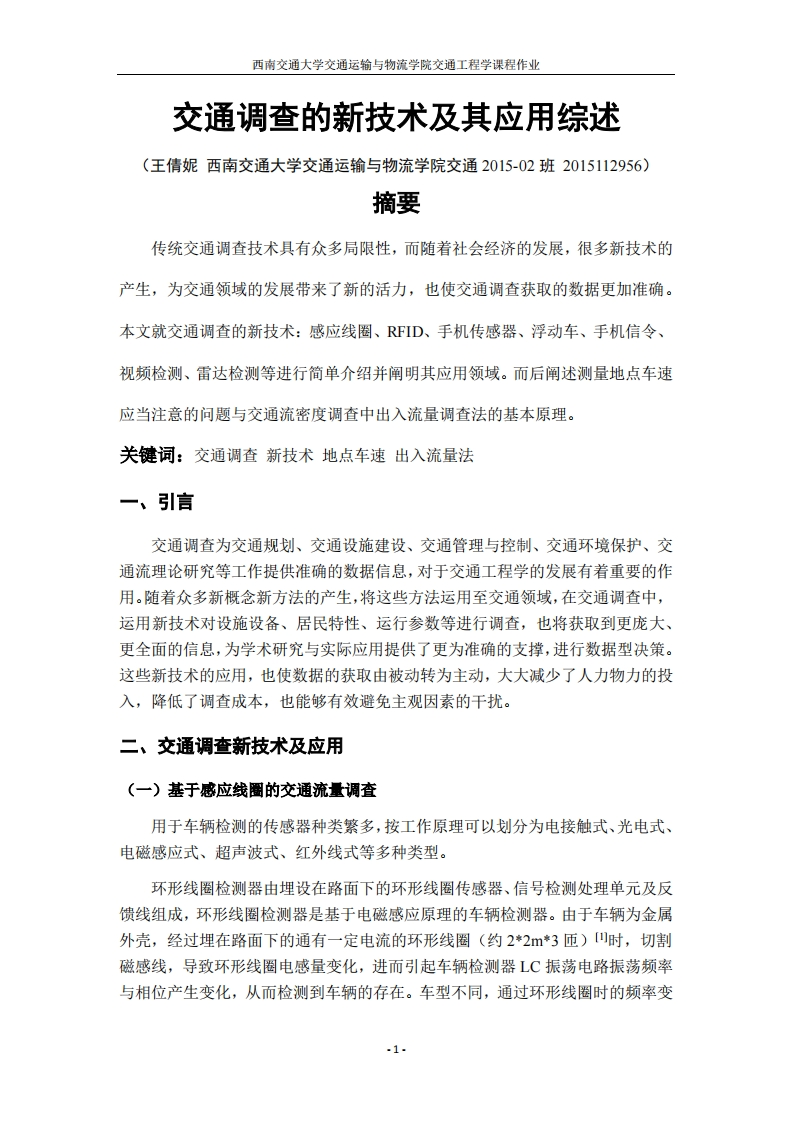 《交通工程学》-交通新技术综述348072@abc4个月前发布关注私信0.66MB10页035《交通工程学》-交通新技术综述此内容为付费资源,请付费后查看¥19¥23黄金会员免费钻石会员免费立即购买您当前未登录!建议登陆后购买,可保存购买订单付费资源 第1页 / 共10页 第2页 / 共10页 试读已结束,还剩8页,您可下载完整版后进行离线阅读 THE END工学类 文本预览 入山1896历南文通大¥题目:交通调查的新技术及其应用综述姓名:王倩妮学号:2015112956专业班级:交通2015-02班指导教师:霍娅敏2017年3月18日 查看更多 收起部分 喜欢就支持一下吧收藏