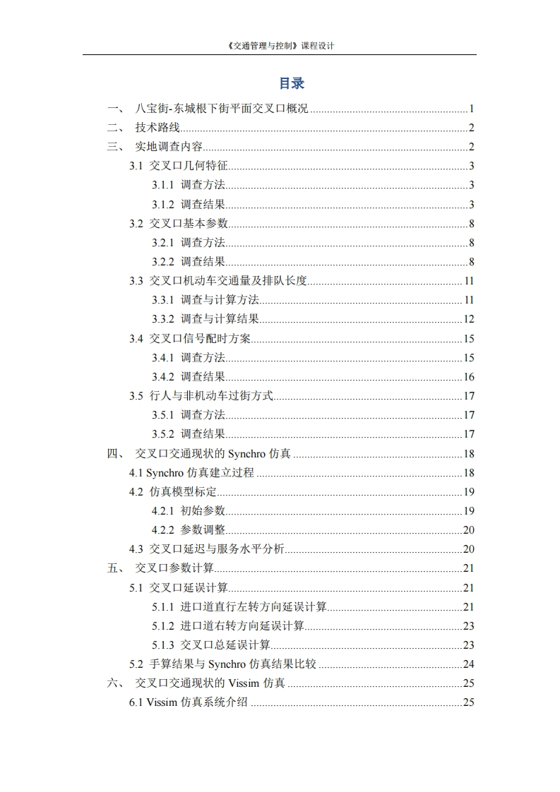 《交通管理与控制》-课程设计348072@abc4个月前发布关注私信5.02MB43页035《交通管理与控制》-课程设计此内容为付费资源,请付费后查看¥19¥23黄金会员免费钻石会员免费立即购买您当前未登录!建议登陆后购买,可保存购买订单付费资源 第1页 / 共43页 第2页 / 共43页 试读已结束,还剩41页,您可下载完整版后进行离线阅读 THE END工学类 文本预览 入1896历有文通大率《交通管理与控制》课程设计报告书题目:八宝街东城根下街平面交叉口交通仿真与信号配时优化团队成员:王倩妮(2015112956施展华(2015113039)王文杰(2015112936)马梓航(2015112987)专业:交通工程任课教师:孙湛博2018年6月27日 查看更多 收起部分 喜欢就支持一下吧收藏