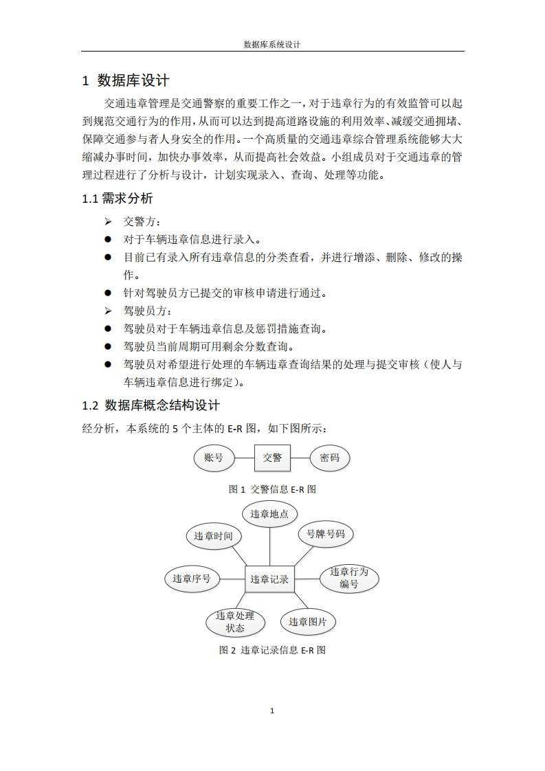 《数据库管理系统》-数据库交通违章综合管理系统数据库348072@abc2个月前发布关注私信1.49MB13页02715《数据库管理系统》-数据库交通违章综合管理系统数据库此内容为付费资源,请付费后查看¥19¥23黄金会员免费钻石会员免费立即购买您当前未登录!建议登陆后购买,可保存购买订单付费资源 第1页 / 共13页 第2页 / 共13页 试读已结束,还剩11页,您可下载完整版后进行离线阅读 © 版权声明文章版权归作者所有,未经允许请勿转载。THE END工学类 文本预览 1896西南文通大率题目:交通违章综合管理系统数据库设计作者:王倩妮(2015112956)刘润哲(2015112957)施展华(2015113039)Jose Andrade (2015199001)班级:交通2015-02班任课教师:唐优华2017年6月13日 查看更多 收起部分 喜欢就支持一下吧点赞15 分享QQ空间微博QQ好友海报分享复制链接收藏