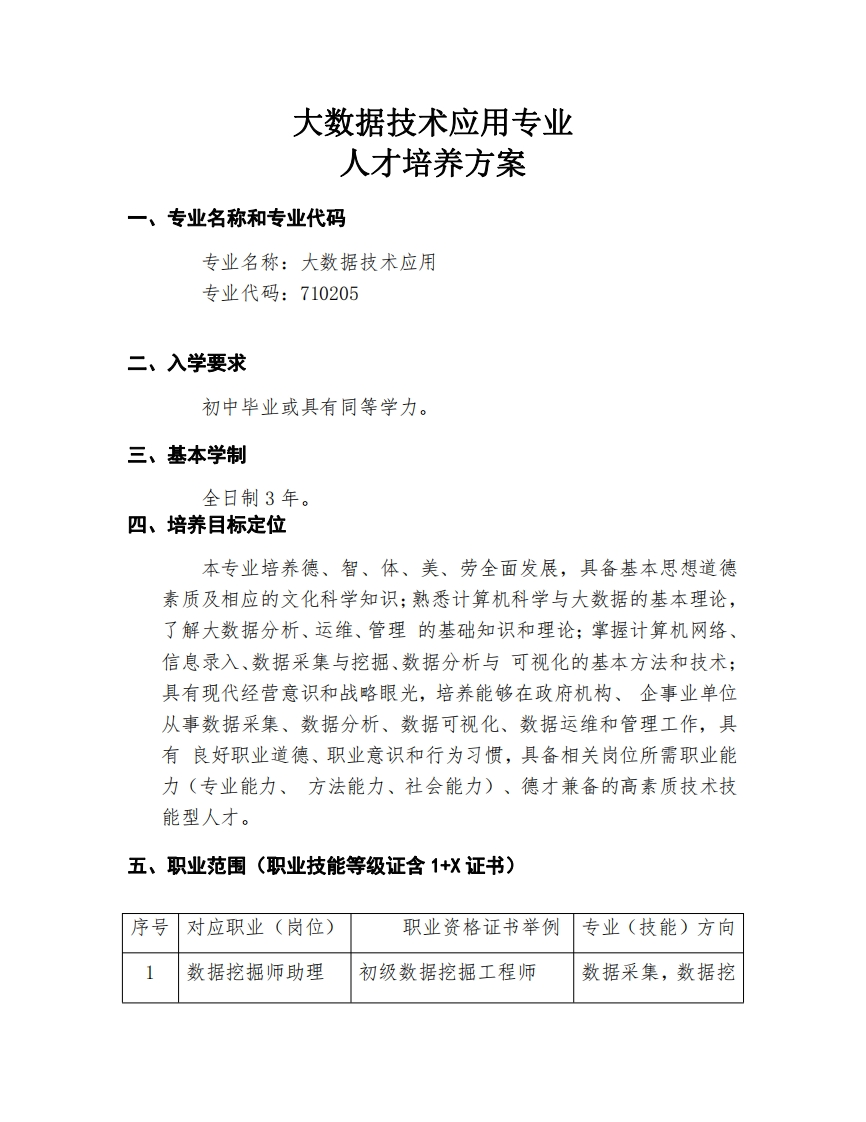大数据技术应用专业_人才培养方案348072@abc4个月前发布关注私信0.33MB32页024大数据技术应用专业_人才培养方案此内容为付费资源,请付费后查看¥11¥22黄金会员免费钻石会员免费立即购买您当前未登录!建议登陆后购买,可保存购买订单付费资源 第1页 / 共32页 第2页 / 共32页 试读已结束,还剩30页,您可下载完整版后进行离线阅读 THE END毕业设计 文本预览 大数据技术应用专业人才培养方案(2022级) 查看更多 收起部分 喜欢就支持一下吧收藏