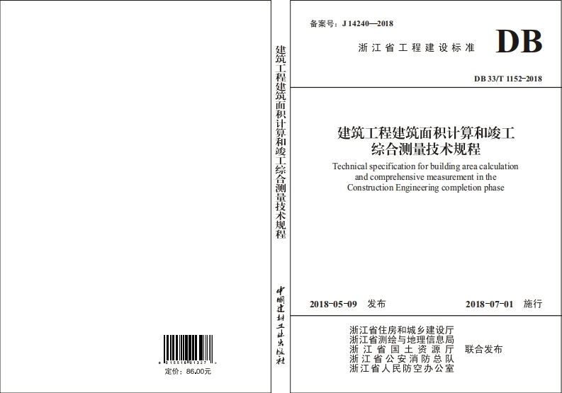 备案号:J14240一2018浙江省工程建设标准DBDB33/T115-2018建筑工程建筑面积计算和竣工综合测量技术规程建筑工程建筑面积计算和竣工综合测量技术规程Technical specification for building area calculationand comprehensive measurement in theConstruction Engineering completion phase中國建科工总出版社2018-0509发布2018-07-01施行浙江省住房和城乡建设厅浙江省测绘与地理信息局浙江省国土资源厅联合发布浙江省公安消防总队定价:86.00元浙江省人民防空办公室