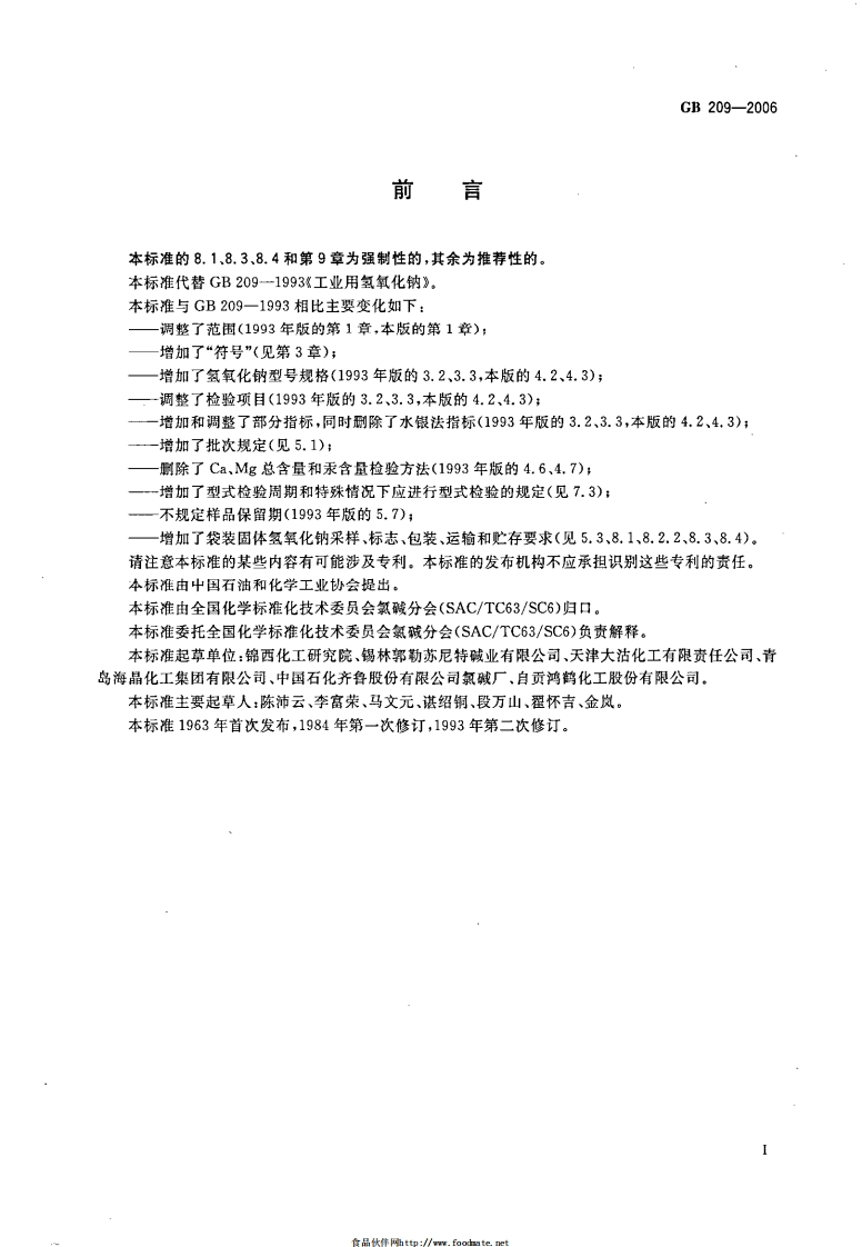 GB209-2006工业用氢氧化钠348072@abc2个月前发布关注私信0.24MB6页0369GB209-2006工业用氢氧化钠此内容为付费资源,请付费后查看¥14¥24黄金会员免费钻石会员免费立即购买您当前未登录!建议登陆后购买,可保存购买订单付费资源 第1页 / 共6页 第2页 / 共6页 试读已结束,还剩4页,您可下载完整版后进行离线阅读 © 版权声明文章版权归作者所有,未经允许请勿转载。THE END标准规范 文本预览 ICS71.060.40G11GB中华人民共和国国家标准GB209-2006代替GB209一1993工业用氢氧·化钠Sodium hydroxide for industrial use2006-03-14发布2006-12-01实施中华人民共和国国家质量监督检验检疫总局中国国家标准化管理委员会发布te ne 查看更多 收起部分 喜欢就支持一下吧点赞9 分享QQ空间微博QQ好友海报分享复制链接收藏