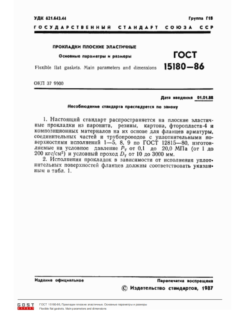 r O C y AA P C T B E HH bI A C T AHA A P TC O K 3 A CC PnPOKAnKN nnoCKNE 3ACTNYHbIEOCHOBHbIE nAPAMETPbI H PA3MEPbIrocT15180-86HagaHmeO中H叫anbHoeTOCyAAPCTBEHHLIA KOMMTET CCCP nO CTAHAAPTAMMOCKBAGOSTTOCT 15180-86,npoknagkn nnooxne anacTNHble.OCHOBHble napaMeTpbl M pa3MepblFlexible flat gaskets.Main parameters and dimensions