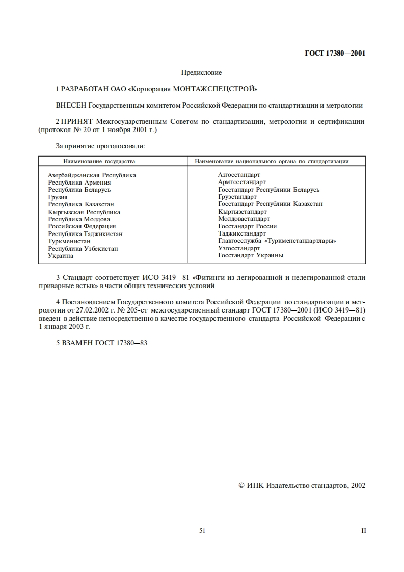 T0CT17380-2001(MC03419-81)M E K T O C y IA P C T B E HH bI HCTAHIAPTeTaJn TpyoonpoBooB oecwoBHble npHBapHbleH3 yrJepoucTon H HH3KoJernpoBaHHon cTaJnOBIIINE TEXHNYECKIE yCJIOBNA3 aHHe o中HaIbHOeMEKTOCYAPCTBEHHbIN COBETIIO CTAHIAPTH3ALINN,METPOJIOTHN H CEPTHHKALINHMHHCK