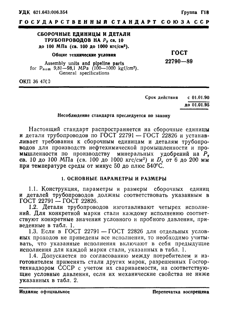 rO C yIAP CT B EH H bI R C T A HIA PTCO O3A CCPCBOPOYHbIE EINHNLIbI N ETAJINTPYEONPOBOIOB HA P.CB.10o 100 Mna (CB.100 o 1000 Krc/CM2)OBIHE TEXHHYECKHE yCJIOBHA0CT22790-89M3 aaHHe o中HaJbHOe772761982TOCyAPCTBEHHLIA KOMHTET CCCP NIO CTAHIAPTAMMocK Ba