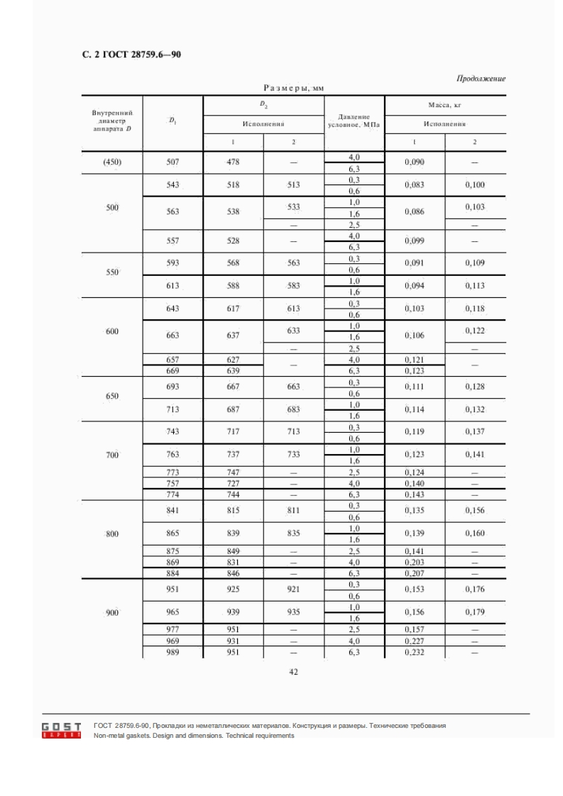 Tpyuna「47M E X rO C y I A P C T B E HH bI C T A H IA P TIIPOKJIAIKH N3 HEMETALINYECKHX MATEPHAJIOBKoncTpyKIa H pa3Mepil.rocTTexungeckne TpeboBana28759.6-90Non-metal gaskets.Design and dimensions.Technical requirementsMKC71.120200Kn361000.368000ara sBeaema 01.01.92HacTogmi cTamnapT pacnpocTpanserca Ha npoKnaaKn H3 HeMeTaumecKitx MarepHanoB K aH-uaM cocynoB H annaparoB no rOCT 28759.2 H TOCT 28759.3.Tpe6oBaHns n.1.2 B tacTn nokaarenen BuyTpeHHni antameTp annapara D.,D,D:nn.2.1,2.4,2.5 H 2.7 HacTomiuero cTaHnapra AnIsoTCA o6a3arenbHLIMH,apyrue TpeGoBaHMa HacToguero cTamnaptaAROTC peKoMeHnyeMbIMH.1.KOHCTPYKIIMA H PA3MEPbI1.1.CraHnapT ycraHaunBaeT KOHcTpyKumio npoknanok AByx ncnonHeHHA:1-mg daHueB no TOCT 28759.2 HcnoaHennii 2-5.8-10.12--15:no rOCT 28759.3 HenoHe-Hi1-12:2-mna daaHuen no TOCT 28759.2 HenoHeHnii 1,6.11.1.2.KoHcTpykia H paiMepi npoKnanok oKH cooTBeTCTBORaTL yeprexy M Ta6umHue.Pa3Mep b,MMDMacea,k灯Bnytpenmi移an.temne回罐etpHenoanemnsannapata Dycaonnoe.Mna224434184130.30.0680.0810.61.04004324270.0700.0831.645725428一4.00.081。6,34934684630.30.0750.0900.6(450)1.05134884831.60.0790.0942541G▣5TOCT 28759.6-90,npoxna AKn M3 HeMeTannNecxx MaTepnanoB.KoHCTpyKLMR M pa3Mepbl.TexHINeckne Tpe6oBaHMRNon-metal gaskets.Design and dimensions.Technical requirements