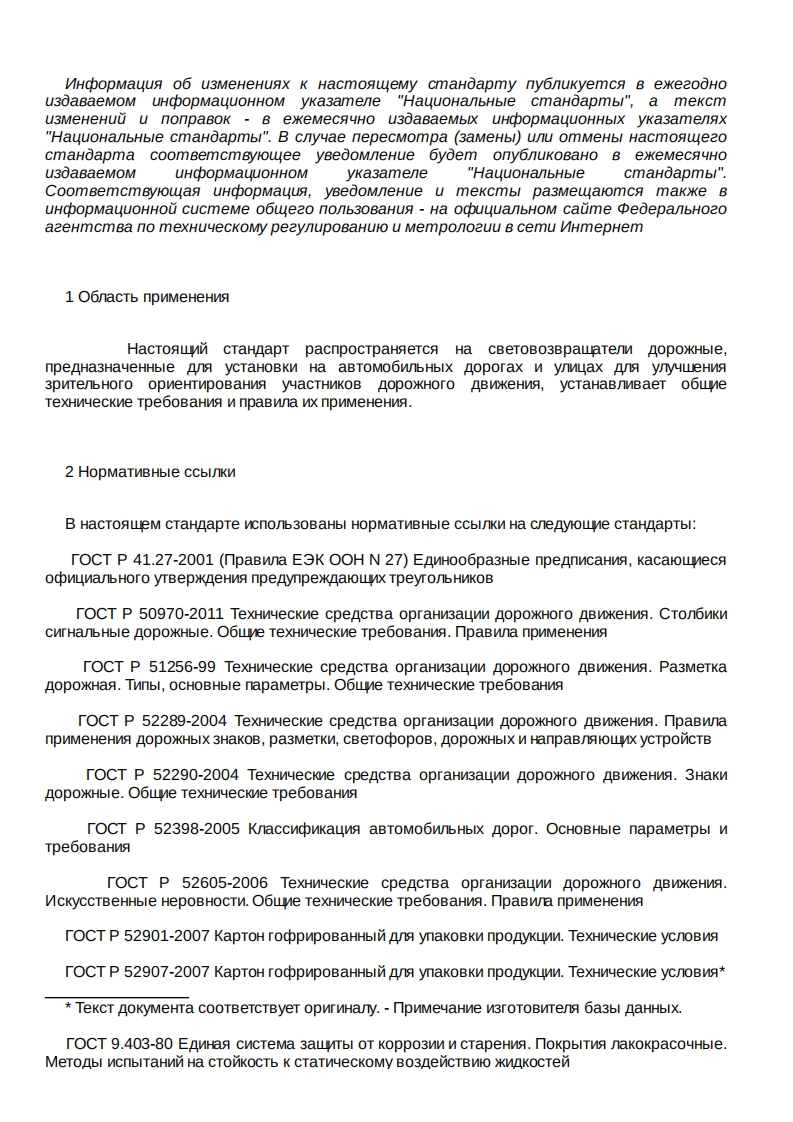 B3aMeH TOCT P 50971-96「0CTP50971-2011「oynna n28HALMOHAJbHbIN CTAHAAPT POCCNNCKON EEPALNNTexHNueckne cpencTBa opraHn3aunn nopoxHoro ABnKeHnACBETOBO3BPALLATEV OPOXKHbIEO6uMe TexHNueckne Tpe6oBaHnA.npaBwa npnMeHeHnATraffic control devices.Road reflectors.General technical requirements.Application rules0KC43.0400Kn521720AaTa BBeneHnA 2011-09-01冂penncnoBneLenn n npwHunnbl cTaHnapTn3aunn B Poccnnckon enepaunn ycTaHoBneHbl enepanbHblM3aKoHOM OT 27 neka6pa 2002 r.N 184-03 "O TexHMueCKoM perynnpoBaHnn',a npaBnnanpnMeHeHn HaunoHanbHbIx CTaHnapToB PoccnicKon enepaum TOCT P 1.0-2004"CTaHnapTn3aun B Poccnnckon enepaunn.OCHOBHble nonoxeHna"CBeneHna o cTaHAapTe1 PA3PABOTAH enepanbHbIM rocynapcTBeHHbIM yHNTapHbIM npeAnpnaTneM"POCOPHVN"Poccnickoro LopoxHoro areHrCTBa MMHNCTepCTBa TpaHcnopTa PoccnicKoenepaunn (Tyn "POCAOPHVV")coBMeCTHO c nenapTaMeHTOM o6ecneueHna 6e3onacHoCTnAopoXKHoro ABwKeHNA MNHNCTepCTBa BHyTpeHHnX nen Poccnnckon enepaunn (enapTaMeHTO6 MBA Poccnn)2 BHECEH TexHN4eCKNM KOMNTeTOM no cTaHnapTn3auMn TK 418 "opoXHoe Xo39MCTBO"3 yTBEPXKIEH BBEAEH B EVCTBVE npwka3oM enepanbHoro areHTCTBa noTexHNueCKoMy perynnpoBaHnio n MeTponorwn oT 22 anpen 2011 r.N 53-CT4 B3AMEHTOCT P 50971-96