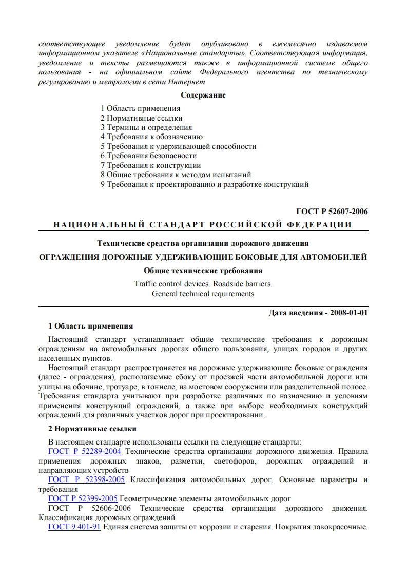 PEIEPAJILHOE ATEHTCTBOIIO TEXHIYECKOMY PETYJINPOBAHIIO H METPOJIOTHNHAⅡHOHAJIbHbINCTAHIAPTTOCT PPOCCHNCKON52607-2006ΦEIEPAⅡMTexHHqeckHe cpeacTBa opraHn3aunOPOKHOrO BHKeHHOTPAKIEHIA OPOKHbIE YIEPKHBAIOILINE BOKOBbIE IABTOMOBHJIEHOomHe TexHHqeckHe TpeooBaHnaMocKBaCTaHapTHH中opM2007ΠIpeancoBneLen H npHHunnbI cTaHnapTn3ann B PoccHickoi enepaunn ycraHomeHbI DenepaHbIM3aKoHOM OT 27 neka6pa 2002 r.Ne 184-D3 O TexHHyecKoM peryupoBaHHH,a npaBunanpHMeHeHna HauHoHanbHbIX cTaHnapToB Poccniickoi Denepaun TOCT P 1.0-2004CraHnapTH3aa B PoccHicko enepaun.OCHOBHble nonoxkeHCBeaeHHa o cTaHaapre1 PA3PABOTAH enepanbHbIM nopOHbIM areHTCTBOM MHHTpaHca Poccnickoi enepaun,DIyII POCIIOPHII,PoccHicKHM TexHH4eCKHM ueHTpOM 6e3onacHOCTH opOHoroBIKeHHS,OAO COFO3JOPHII,MAIIN (TTy),IIO BII MBII PoccHH,HMII BIUI MBIIPoccnn2 BHECEH TexHHqeCKHM KOMHTETOM no cTaHnapTH3auH TK 278 Be3onacHOCTb opOKHoroBIKeHHA H TexHH4eCKHM KOMHTeTOM no cTaHnapTn3auH TK 418 opoHoe xo3cTBO>3 yTBEPXKIIEH H BBEJIEH B IIENCTBHE IIpuka30M DenepanbHoro areHTCTBa noTexHHyecKomy perynupoBaHnio H MeTponorn OT 11 nekaopa 2006 r.Ne 297-CT4 B HacToameM cTaHnapre yureHbI OCHOBHbIe HopMaTHBHbIe nonoxkeHna cnenyiounxeBponencknx craHnapToB:EH 1317-1:1998 opoKHble ynepKHBaloue CHcreMbI.HacTb 1.TepMnHonorna H ooueTpe6oBaHna K Meronam ncnbrraHHs>(EN 1317-1:1998 Road restraint systems Part 1:Terminology and general criteria for test methods>,IDT)EH 1317-2:1998 opoHble ynepxnBaromne CHcTeMbI.YacTb 2.Knaccbl HcnonHeHni,KpHTepHn npHeMKH HcnbITaHHi Ha ynap H MeTobI HcnbITaHni 3auTHbIx orpakneHni (EN1317-2:1998 (Road restraint systems-Part 2:Rerformance classes,impact test acceptance criteriaand test methods for safety barriers>,IDT)5 BBEMEH BIIEPBbIEMHoopMayua 06 u3MeHeHuax K HacmoaueMy cmaHdapmy nyonukyemca 6 exice200Hou30asaeMOM uHobopMayuoHHOM yka3amene HayuoHanbHble cmaHdapmbl,a mekcm 13MeHeHuii unonpa6oK 6 excemeca Ho u30acaeMbix uHoopMayuoHHblx yka3amensx &HayuoHanbHblecmaHdapmbly.B cnyuae nepecmompa (3aMeHbl)wu ommeHbl Hacmoaue2o cmandapma
