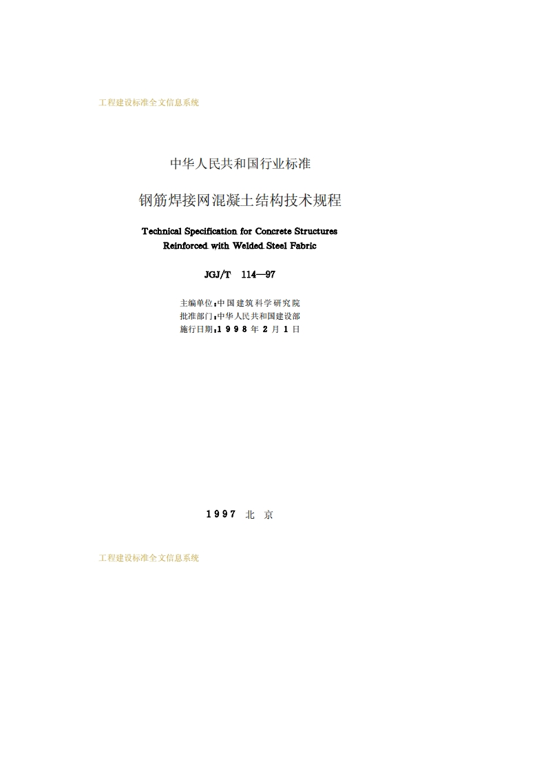 JGJ114T-97钢筋焊接网混凝土结构技术规程348072@abc5个月前发布关注私信0.87MB43页041JGJ114T-97钢筋焊接网混凝土结构技术规程此内容为付费资源,请付费后查看¥17¥22黄金会员免费钻石会员免费立即购买您当前未登录!建议登陆后购买,可保存购买订单付费资源 第1页 / 共43页 第2页 / 共43页 试读已结束,还剩41页,您可下载完整版后进行离线阅读 THE END标准规范 文本预览 工程建设标准全文信息系统中华人民共和国行业标准钢筋焊接网混疑土结构技术规程Technical Specification for Concrete StructuresReinforced with Welded Steel FabricJG1/T11497建标1997北京工程建设标准全文信息系统 查看更多 收起部分 喜欢就支持一下吧收藏
