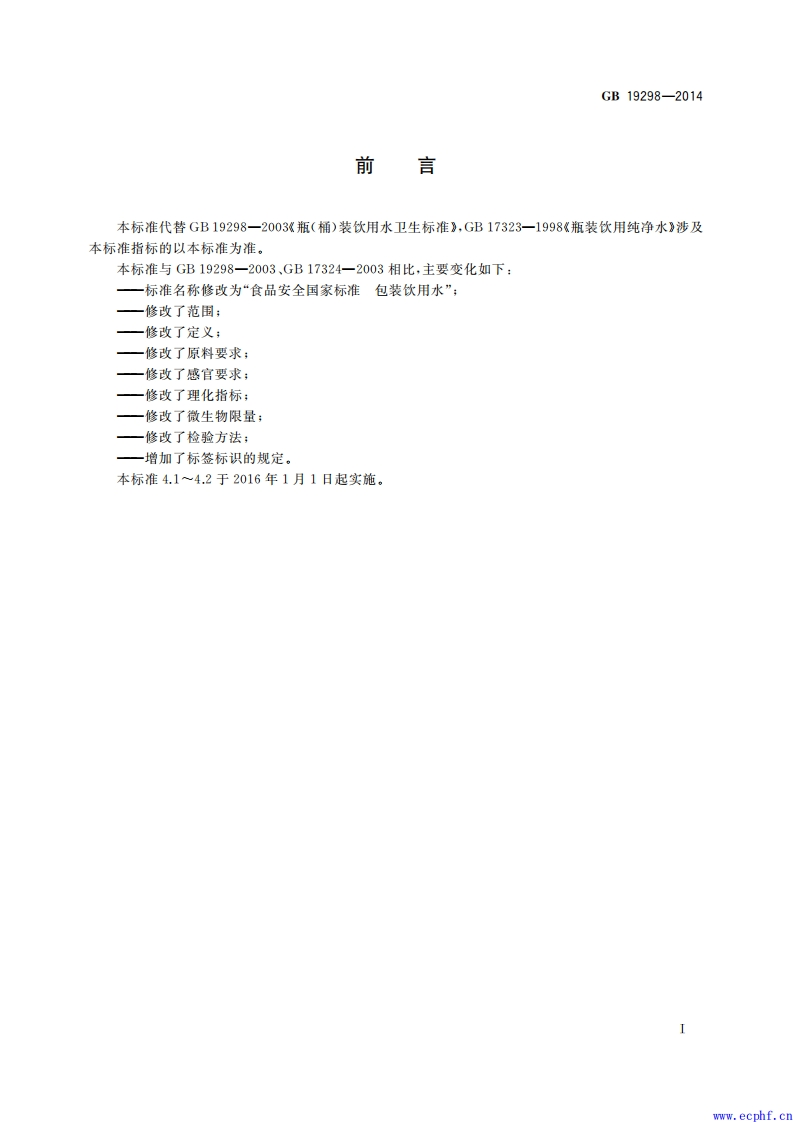 包装饮用水348072@abc4个月前发布关注私信0.23MB5页035包装饮用水此内容为付费资源,请付费后查看¥14¥24黄金会员免费钻石会员免费立即购买您当前未登录!建议登陆后购买,可保存购买订单付费资源 第1页 / 共5页 第2页 / 共5页 试读已结束,还剩3页,您可下载完整版后进行离线阅读 THE END标准规范 文本预览 GB中华人民共和国国家标准GB19298-2014食品安全国家标准包装饮用水2014-12-24发布2015-05-24实施中华人民共和国国家卫生和计划生育委员会发布www.ecphf.cr 查看更多 收起部分 喜欢就支持一下吧收藏