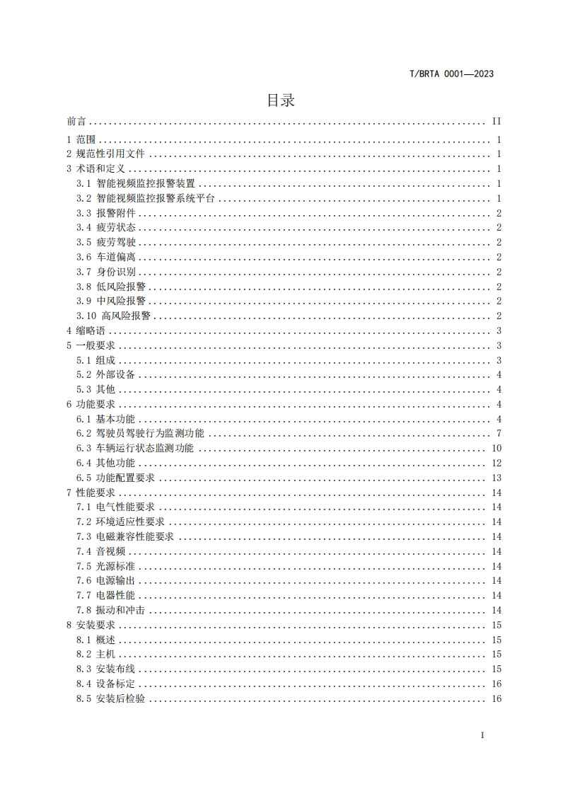 北京市道路运输车辆智能视频监控报警装置技术规范348072@abc4个月前发布关注私信0.68MB19页030北京市道路运输车辆智能视频监控报警装置技术规范此内容为付费资源,请付费后查看¥14¥24黄金会员免费钻石会员免费立即购买您当前未登录!建议登陆后购买,可保存购买订单付费资源 第1页 / 共19页 第2页 / 共19页 试读已结束,还剩17页,您可下载完整版后进行离线阅读 THE END标准规范 文本预览 1C503.220.20CCS R 10/19团体标准T/BRTA0001-2023北京市道路运输车辆智能视频监控报警装置技术规范2023-03-24发布2023-04-15实施北京市道路运输协会发布 查看更多 收起部分 喜欢就支持一下吧收藏