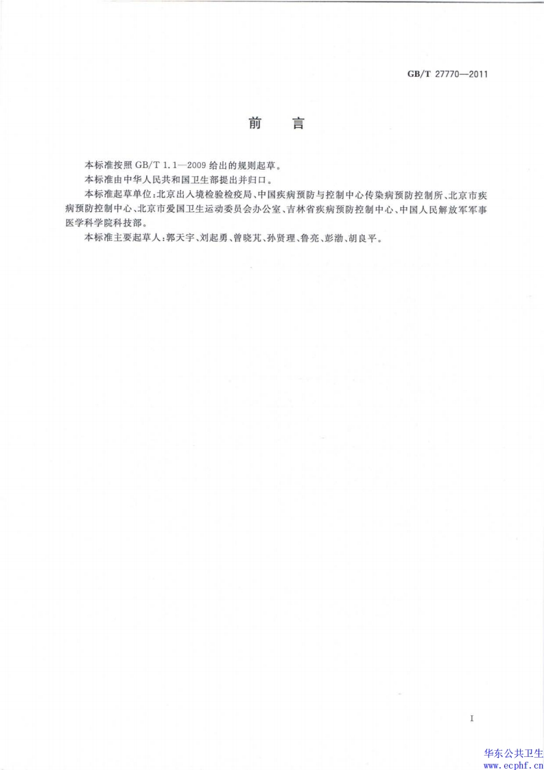 病媒生物密度控制水平鼠类348072@abc2个月前发布关注私信0.76MB7页03215病媒生物密度控制水平鼠类此内容为付费资源,请付费后查看¥14¥24黄金会员免费钻石会员免费立即购买您当前未登录!建议登陆后购买,可保存购买订单付费资源 第1页 / 共7页 第2页 / 共7页 试读已结束,还剩5页,您可下载完整版后进行离线阅读 © 版权声明文章版权归作者所有,未经允许请勿转载。THE END标准规范 文本预览 ICs11.020C05GB中华人民共和国国家标准GB/T27770-2011病媒生物密度控制水平鼠类Criteria for vector density control-Rodent2011-12-30发布2012-04-01实施中华人民共和国卫生部9。中国国家标准化管理委员会发布华东公共卫生www.ecphf.cn 查看更多 收起部分 喜欢就支持一下吧点赞15 分享QQ空间微博QQ好友海报分享复制链接收藏