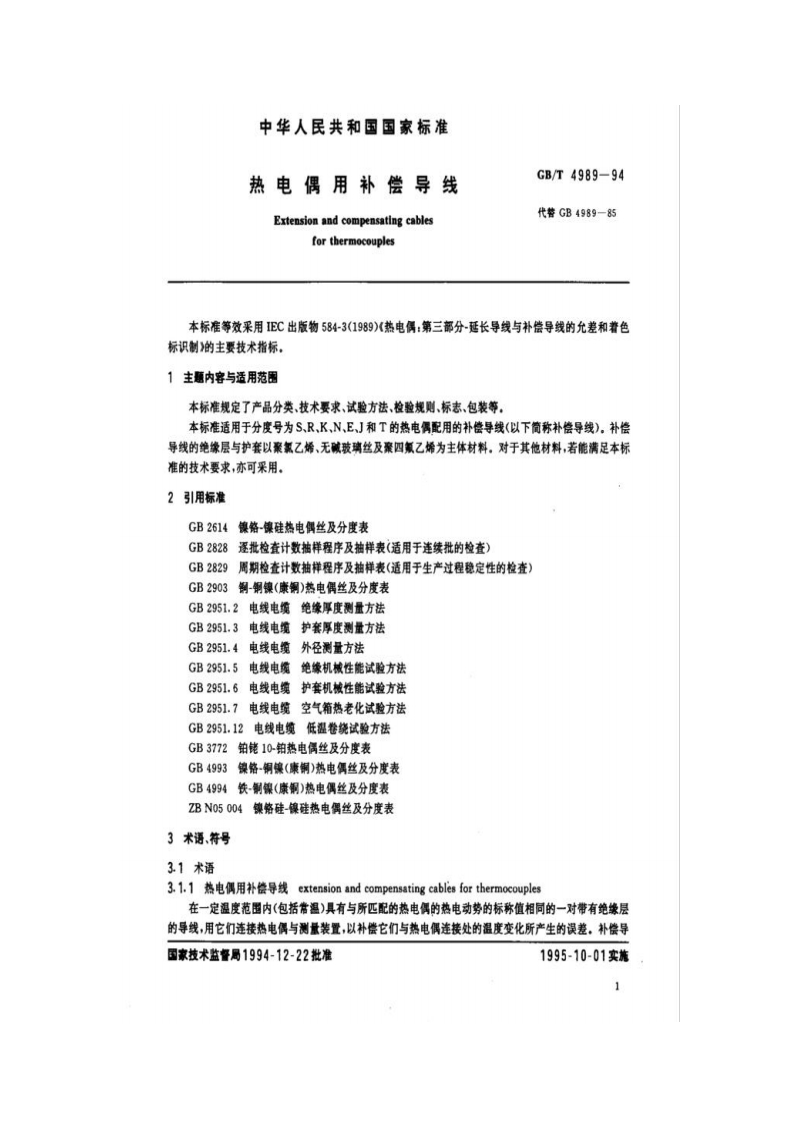 补偿导线GBT4989-1994348072@abc4个月前发布关注私信1.32MB17页033补偿导线GBT4989-1994此内容为付费资源,请付费后查看¥14¥24黄金会员免费钻石会员免费立即购买您当前未登录!建议登陆后购买,可保存购买订单付费资源 第1页 / 共17页 第2页 / 共17页 试读已结束,还剩15页,您可下载完整版后进行离线阅读 THE END标准规范 文本预览 811…gB中华人民共和国国家标准GB/T4989-94热电偶用补偿导线Extension and compensating cablesfor thermocouples1994-12:22发布1995-10-01实施国家技术监督局发布 查看更多 收起部分 喜欢就支持一下吧收藏